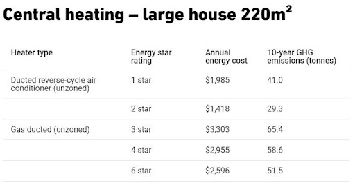 This implies that, in a 220 m2 home, a 1-star reverse cycle system might offer central heating at a lower cost than a 6-star gas ducted system, according to Sustainability Victoria.